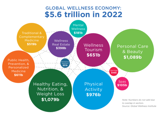 The wellness market covers a wide range of sectors, including: